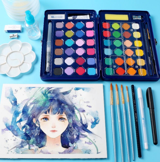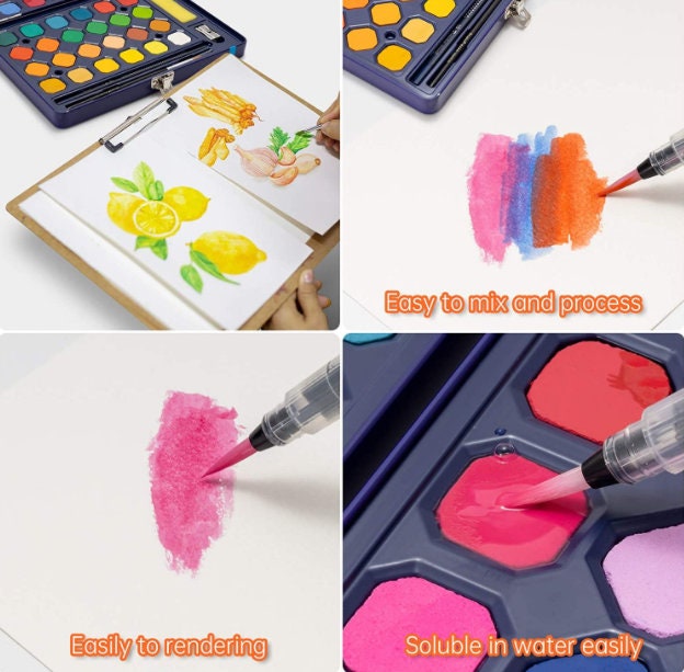 Watercolor Paints Set With Brush - Solid Pigment Pen Painting Supplies Art Supplies Professional Artist Travel Paints 12 18 24 36 48
