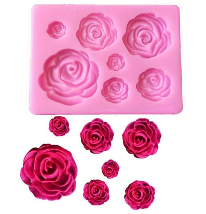 Rose Mold - Flower Resin Clay - Fondant, Chocolate, Soap, Wax, Decorating Tools Sugarcraft Cake, Polymer, Candy Baking, Silicone Rubber