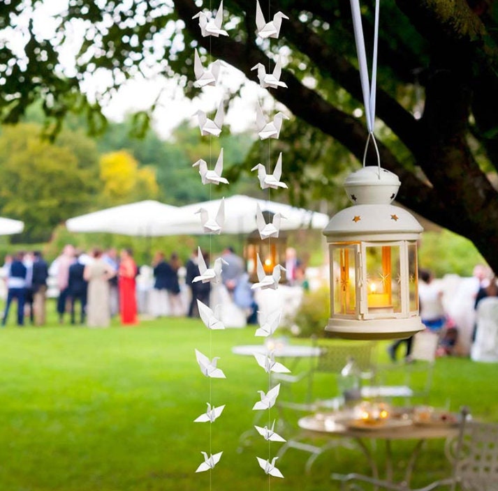 White Origami Crane Garland String - Wedding Decoration - Paper Crane - Geometric Nursery Children Home Decor