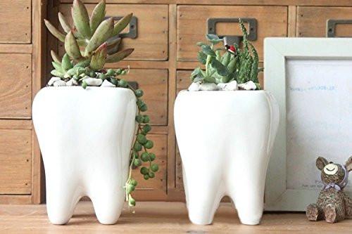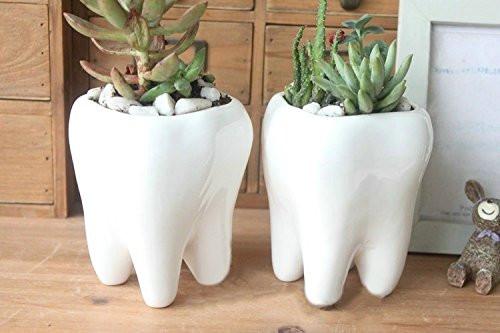 LightningStore Ceramic White Tooth Teeth Succulent Plants Pot Microlandschaft Personalized Office House Balcony Landscape Pot Creative Decorative Flower Pots