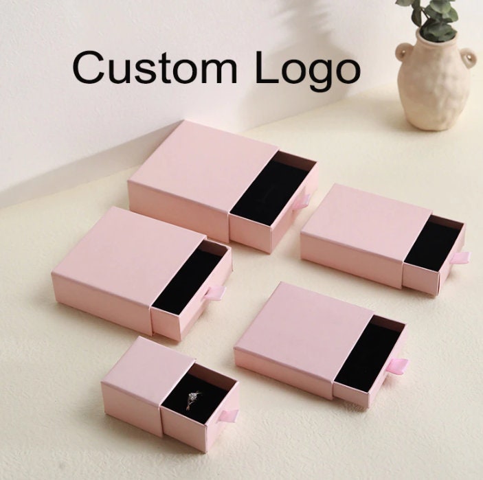 10 Pcs Custom Jewelry Boxes With Custom Logo, Personalized Paper Boxes, Small Packaging Boxes Drawer, For Earring Necklace Ring, Bulk Wholesale