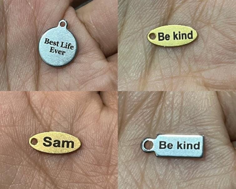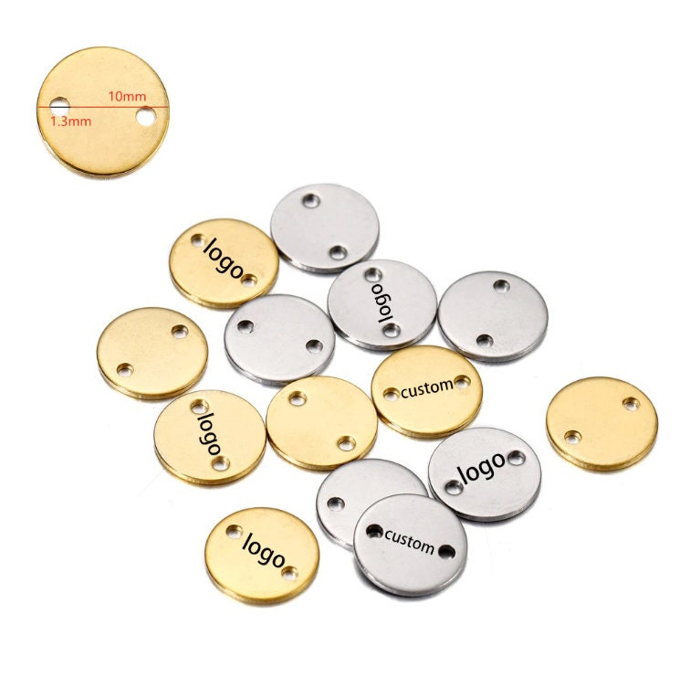 100 Custom Stainless Steel Charm, Gold Silver Personalized Charm, Logo Charm Beads, Laser Engraved Charm Beads For Jewelry Bracelets Making
