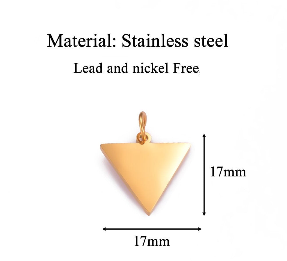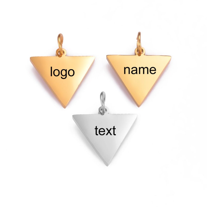 5 Custom Triangle Charm, Stainless Steel Gold Silver Personalized Charm, Logo Charm Beads, Engraved Charm Beads For Jewelry Bracelets Making
