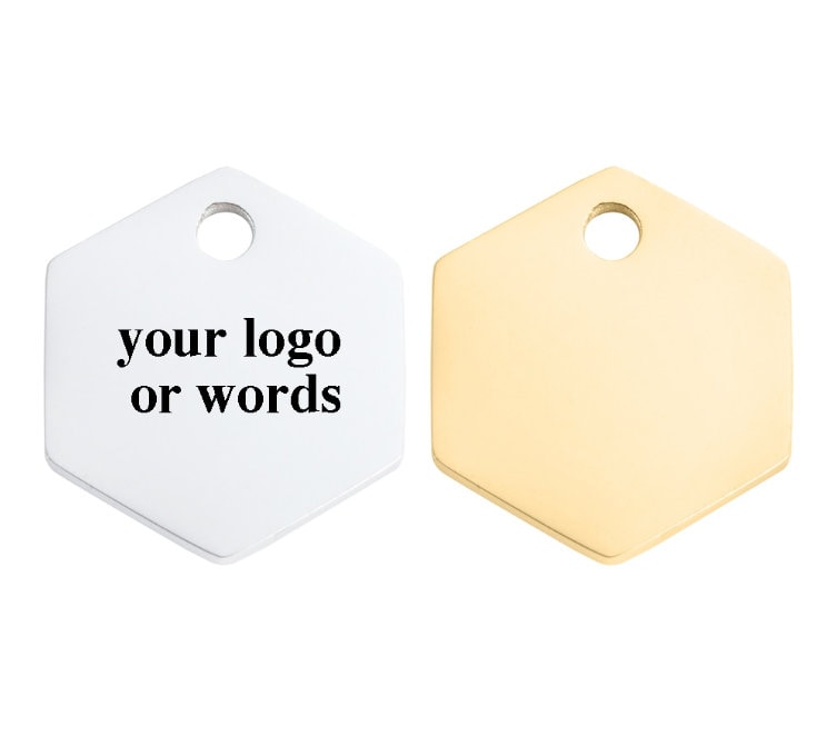 50 Custom Charm, Gold Silver Personalized Charm, Hexagon Charm, Logo Charm Beads, Laser Engraved Charm Beads For Jewelry Bracelets Making