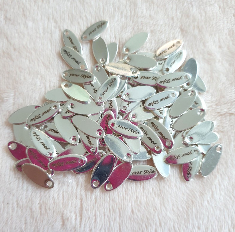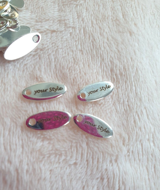 50 Personalized Charm, Jewelry Making Gold Silver Custom Charm, Stainless Steel Logo Charm Beads, Laser Engraved Charm Beads For Bracelets