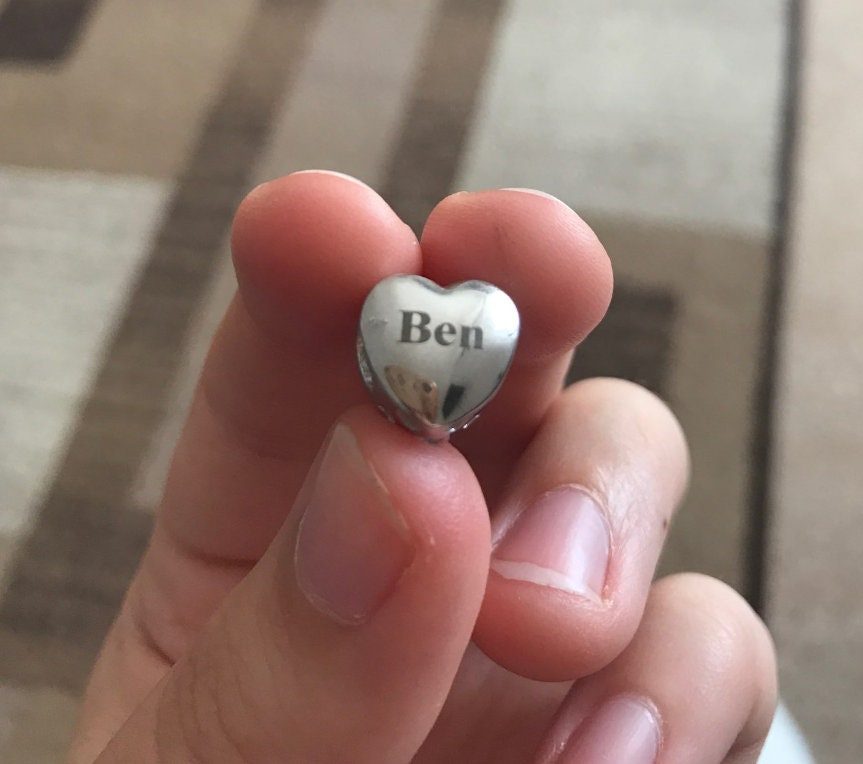 Custom Photo Beads - Personalized Heart Spacer Beads - Stainless Steel Metal Beads - Edelstahlperlen Silber Gravur - Jewelry Bracelet Making