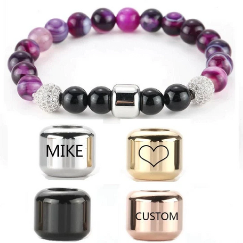 Engraved Beads - Personalized Beads - Custom Spacer Beads - Stainless Steel Metal - Edelstahlperlen Silber Gravur - Jewelry Bracelet Making