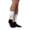 These socks are extra comfortable thanks to their cushioned bottom. The foot is black with artwork printed along the leg with crisp, bold colors that won't fade.