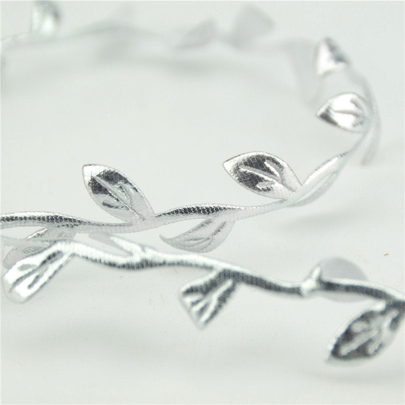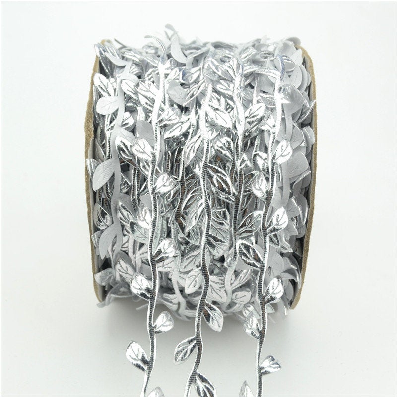 10 Meters Metallic Vining Gold Silver Leaf Trim - Leaf Ribbon - Fabric Leaves Artificial Fake Vine - Leaf Garland - Ribbon for Headbands
