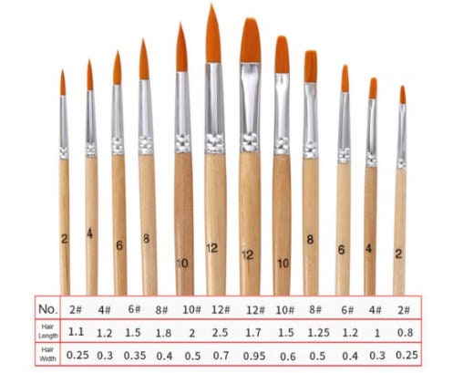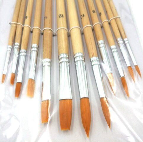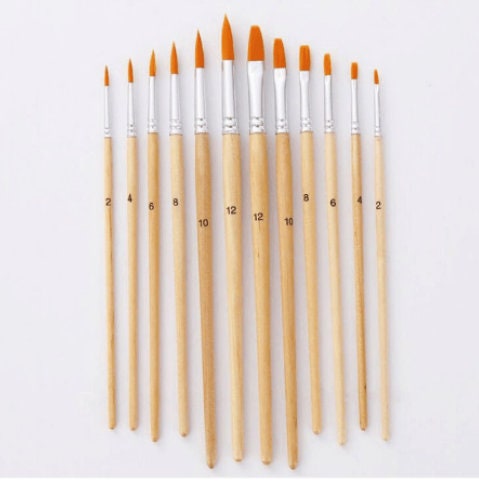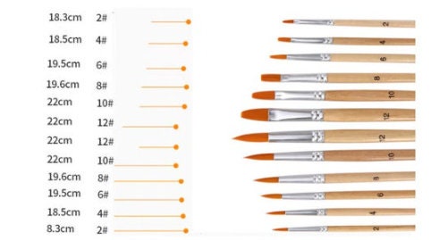 12 Pcs Paint Brushes - Watercolor Brushes - Oil Paint Brushes - Flat Painting Brushes - Wooden Art Artist Supplies - Size 2 4 6 8 10 12
