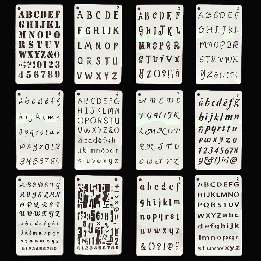 12 Piece Bullet Journal Stencil,Letter Stencil Set,Number Stencil Plastic,Alphabet Stencil,Bullet Journal, Letters, Calligraphy, Handwriting
