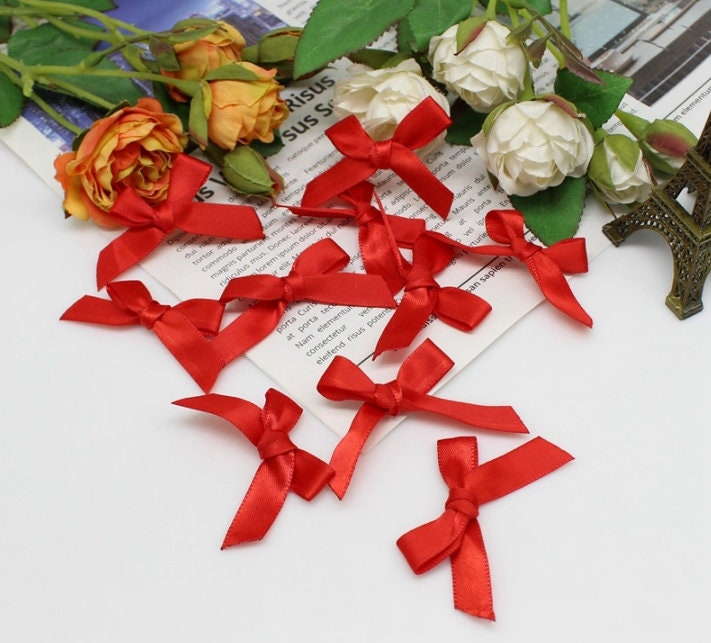200 Pcs Mini Fabric Ribbon Bow Tie/Tiny Polyester Bows 35 mmx45 mm/Mix Hair Accessory Jewellery Making Wedding Favor Embellishment