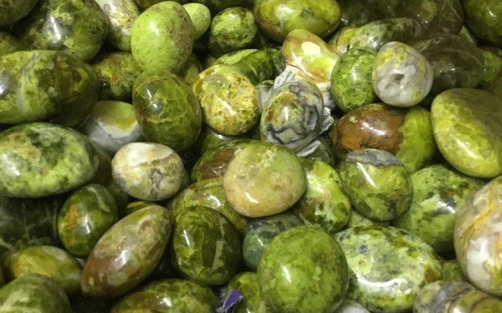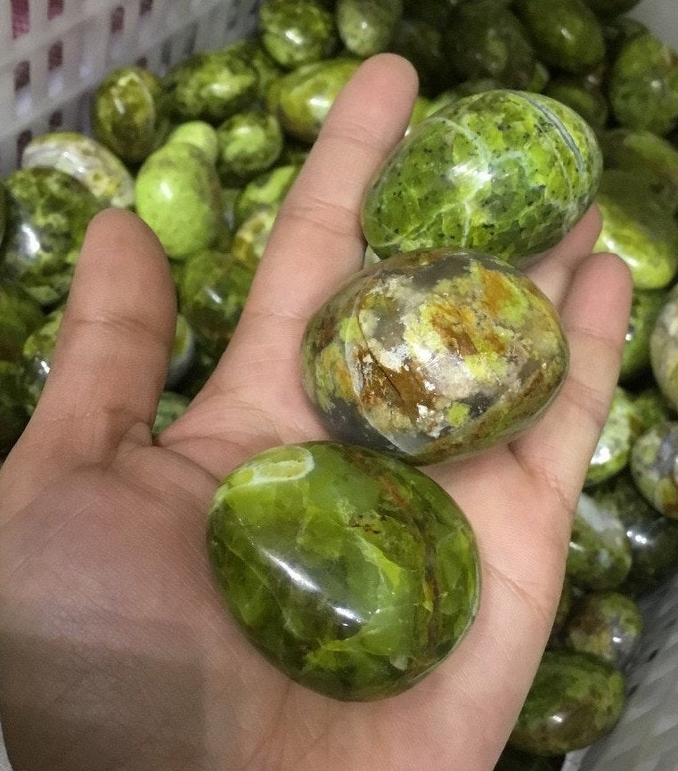 3 Pcs Green Opal Palm Stone, Pocket Stone, Meditation Stone, Worry Stone, Promotes Emotional Recovery and Aids Relationships
