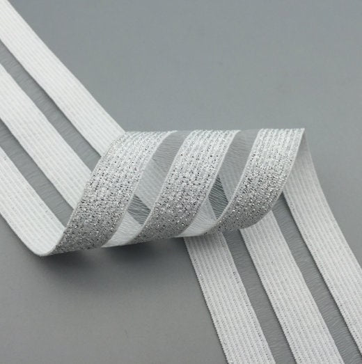 45 Meters Gold Silver Elastic Band, Elastic Webbing, Clothing Accessories, Elastic Trim, Elastic Ribbon, Sewing Elastic, Waistband Elastic