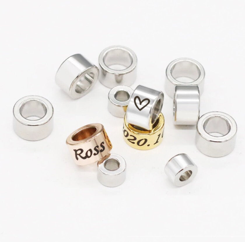Custom Engraved Beads - Personalized Beads - Spacer Beads - Stainless Steel Metal - Edelstahlperlen Silber Gravur - Jewelry Bracelet Making