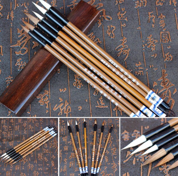 6 Pcs Chinese Calligraphy Brush - Japanese Calligraphy Set - Paint Brush Paintbrush - Writing Brush - Wolf Hair Mandarin Traditional Brush
