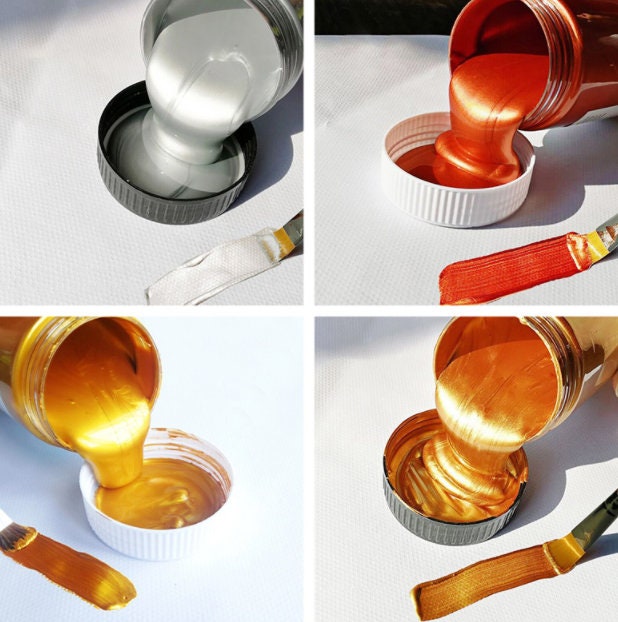 7 Pcs Metallic Acrylic Paint - Craft Paint - Gold Paint - Shimmer Paint - Folk Art Paint - Glittery Paint - Reflective Paint - Ceramic Paint