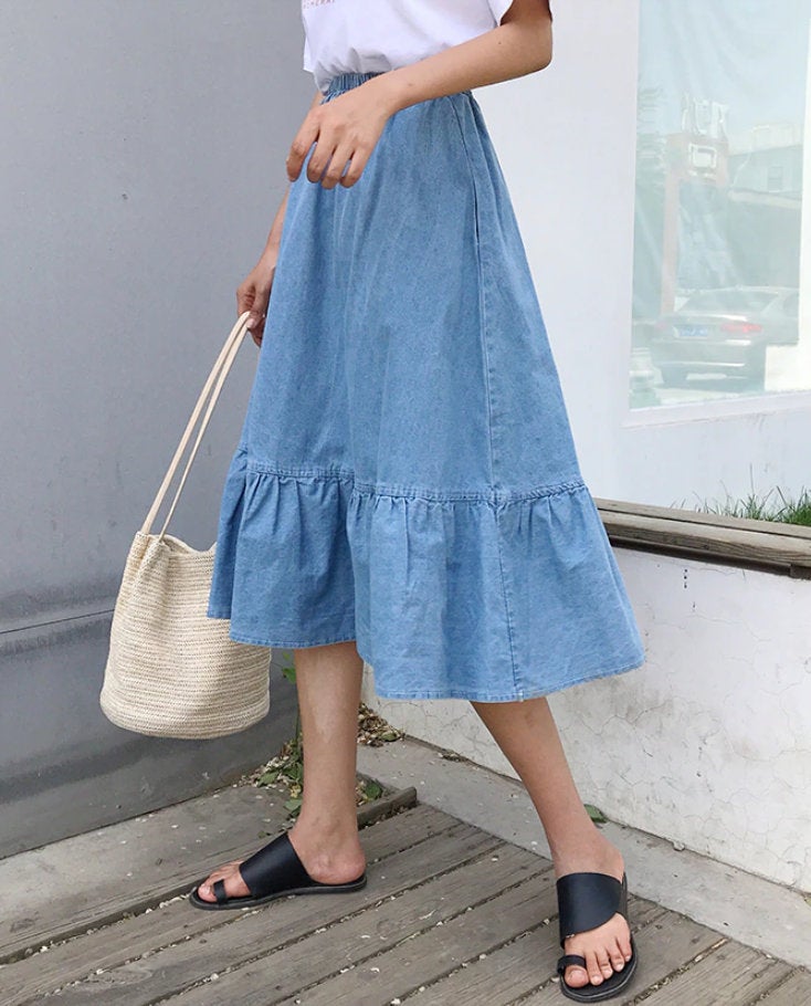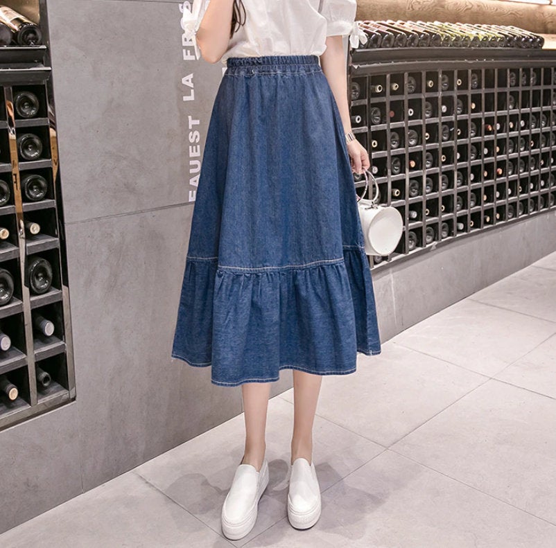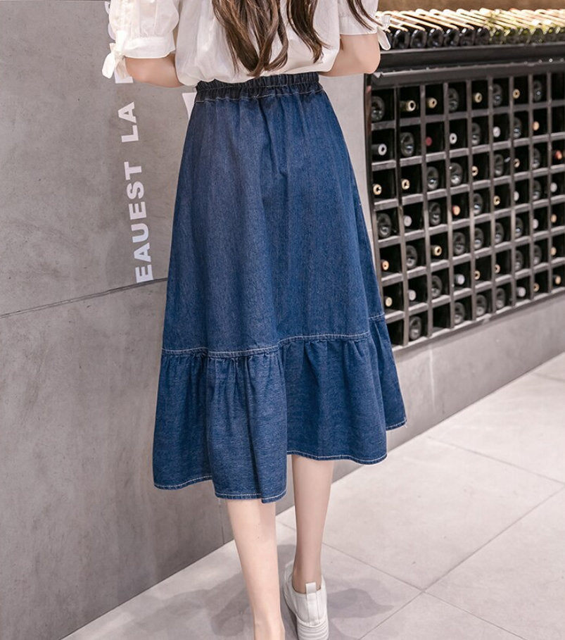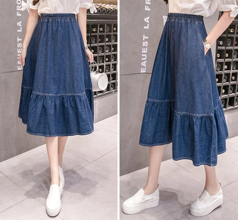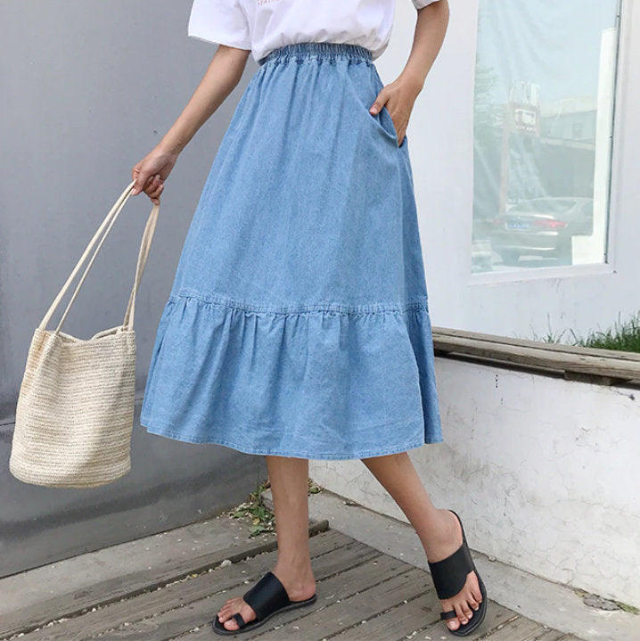 Blue Denim Skirt, High Waist Skirt With Pocket, Summer, Long Skirt, Women Skirt, Minimalist Skirt, Fall Clothing, Jean Style, Classic