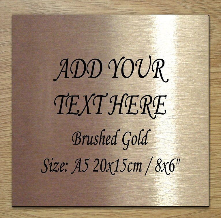 Our gold signs are digitally produced so that the design is entirely integrated into the sign with a completely smooth, glossy finish, making them appropriate for both professional and personal use. Made of aluminium, they do not rust and simply wipe clean with a soft cloth. The plaques have a brushed silver back.