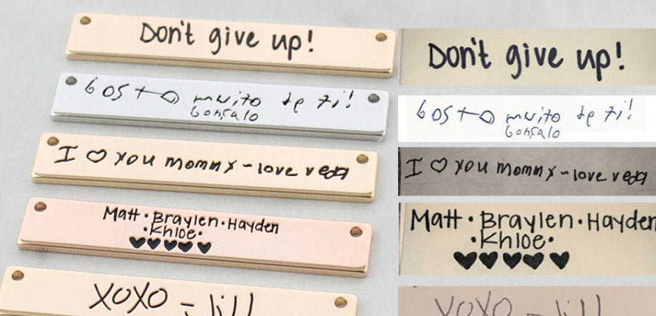 Custom Handwriting Engraved Bar Necklace, Fingerprint Necklace Heart, Personalized Drawing Necklace, Signature Necklace, Memorial Necklace