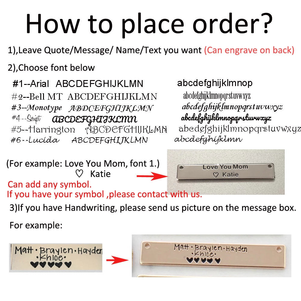 Simply enter the text you want on the necklace in the personalization box or send us your hand written text photo via chat/email.