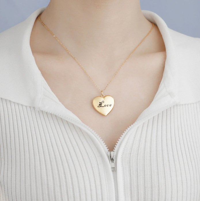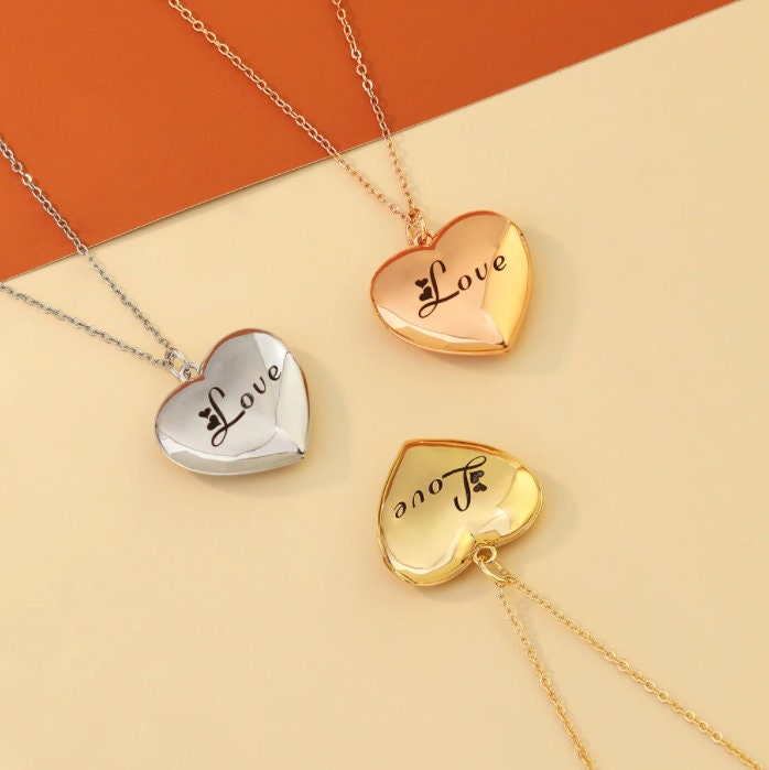 Custom Heart Locket Necklace - Personalized Photo Lock - Personalised Image Text Engraving Gift for Her Girlfriend Mom Wife Anniversary