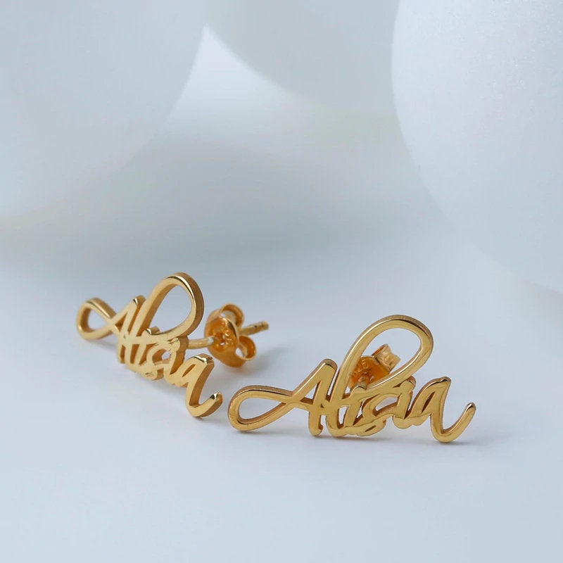 Custom Name Earring - Minimalist Earrings - Dainty Earrings - Personalized Jewelry - Stud Earring - Gift for Her - BridesMaid Gift Stackable