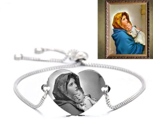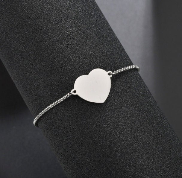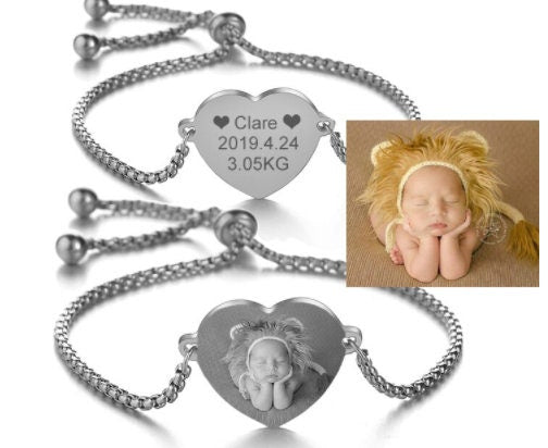 Custom Photo Bracelet - Personalized Photo Engraved Bracelet for Women - Heart Charm - Gift for Her Wife Girlfriend - Birthday Anniversary
