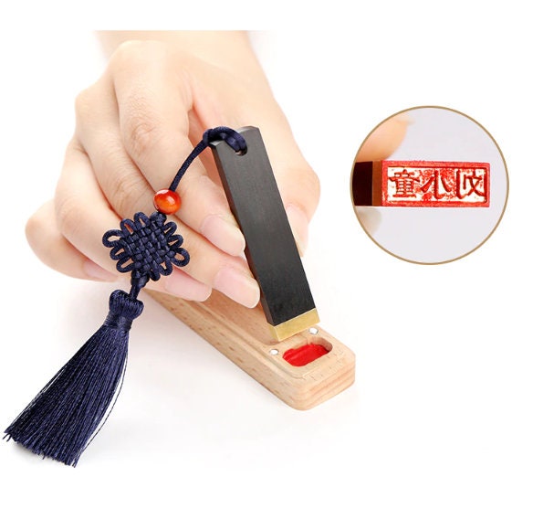 Custom Rectangle Japanese Name Stamp - Japanese Hanko Chop - Chinese Name Stamp - Chinese Name Seal - Personalized Wood Japanese Stationery