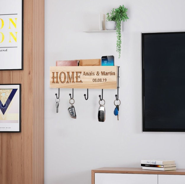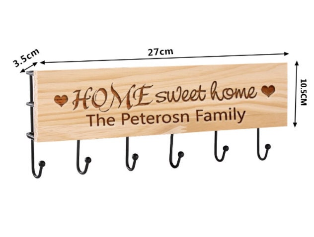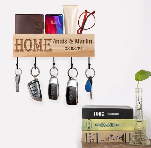 Custom Wood Key Hanger for Wall, Housewarming New Home Décor Gift for Wedding, Personalized Gifts for Couple Mr Mrs Key Ring Holder Hook