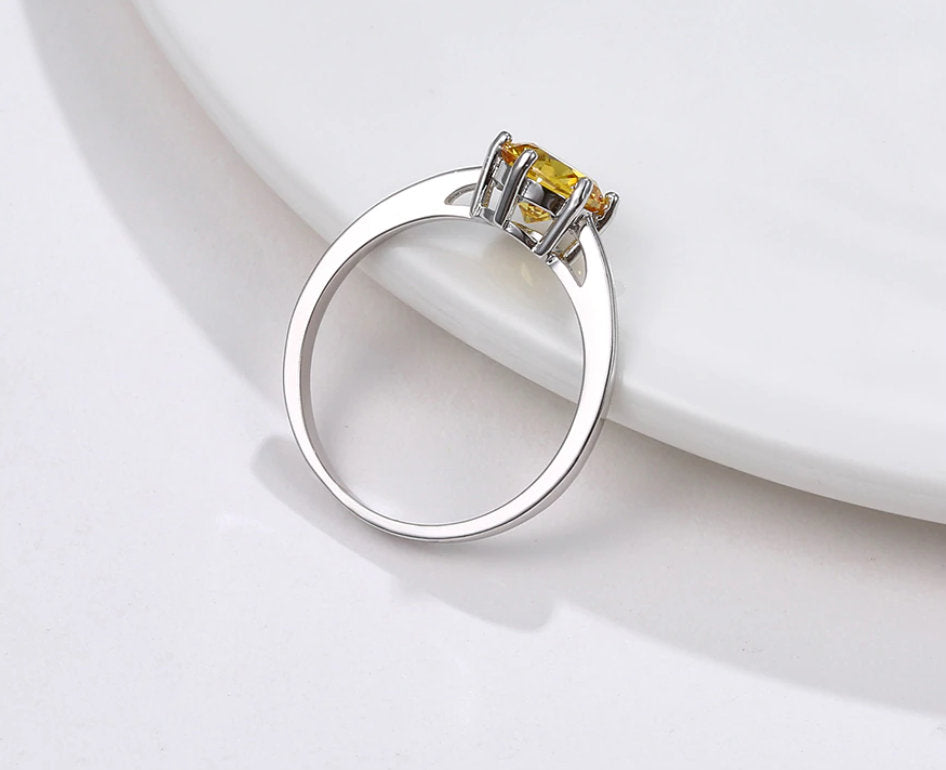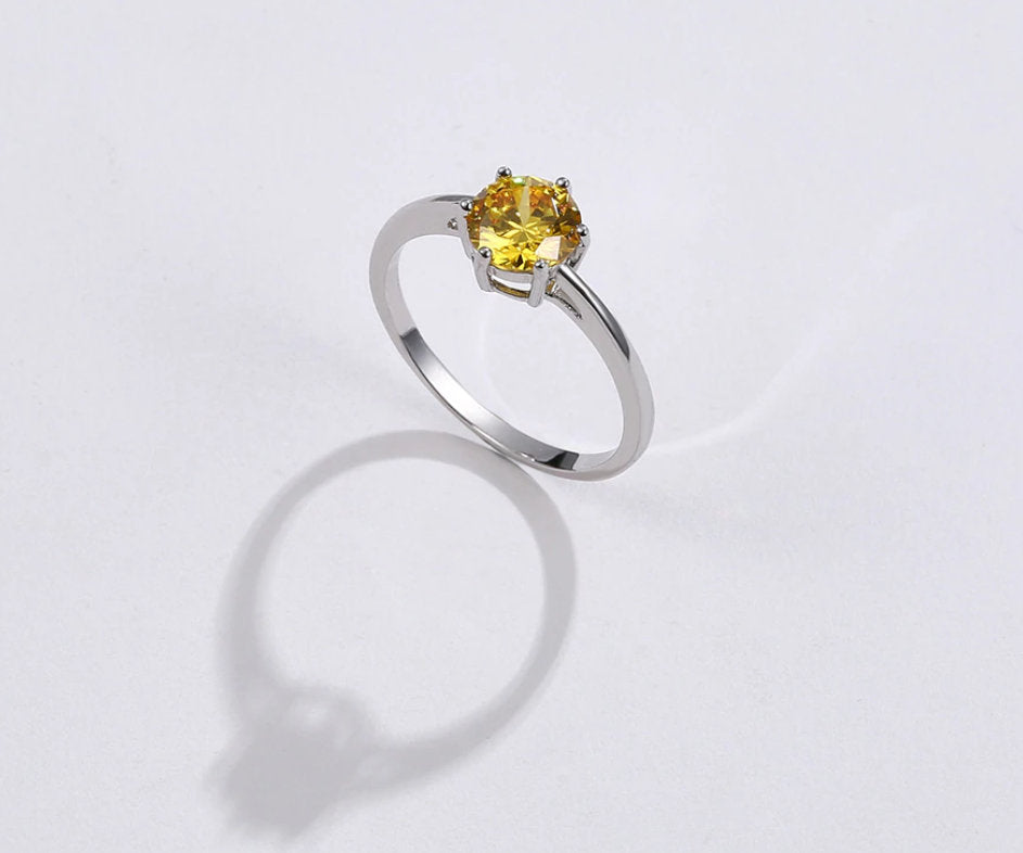 Dainty Citrine Ring for Women, Yellow Stone Silver Ring, Citrine Jewelry, November Birthstone, Crystal Gemstone Stacking Minimalist Gift