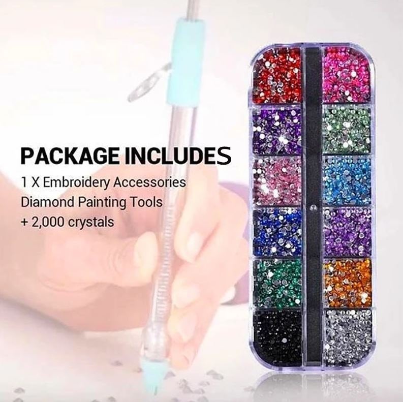 Diamond Painting Drill Pen + 2000 Crystals Set - DIY Drilling Accessory Kit - Personalized Gift Art Supply