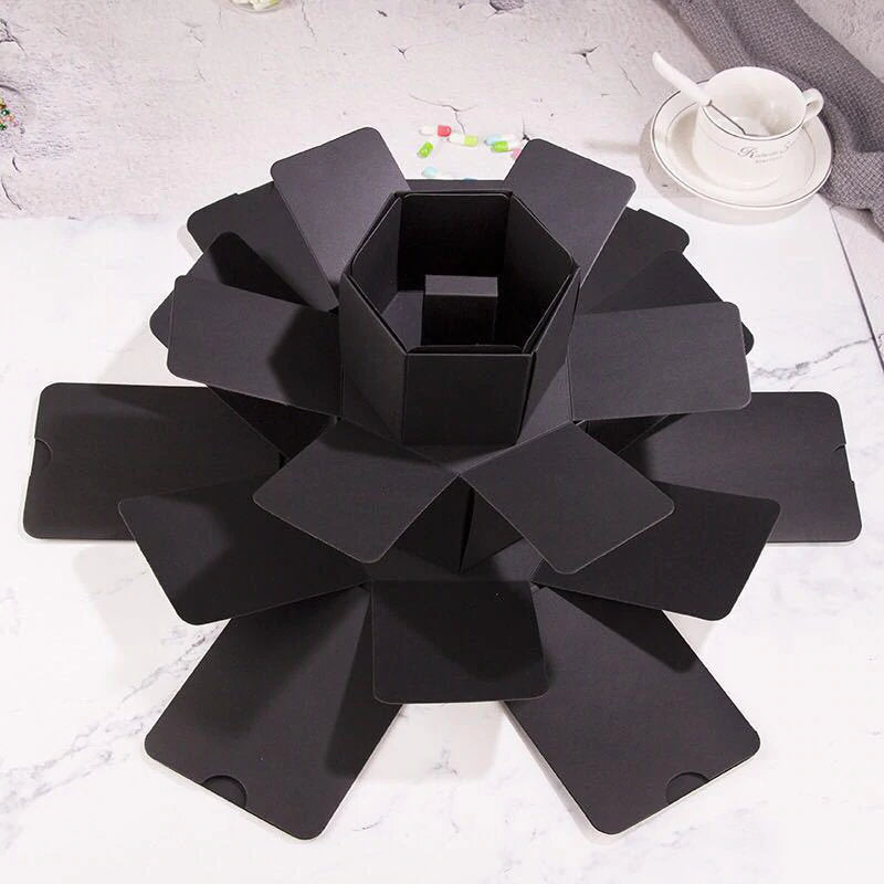 Explosion Gift Box DIY Photo Album Scrapbook for Birthday Anniversary Wedding Proposal, Hexagon Black, Gift For Her, Personalized Gift Ideas
