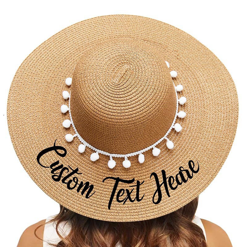 Floppy Beach Hat Personalized Bride Hat Floppy Hat with Name Custom Personalized Beach Hat Honeymoon Must Have Gift Straw Hat Customizable