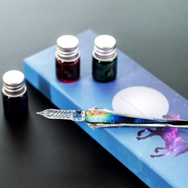 Glass Dip Pen Set - Glass Calligraphy Pen - Ink Pen - Oblique Pen - Gift for Writers and Artists