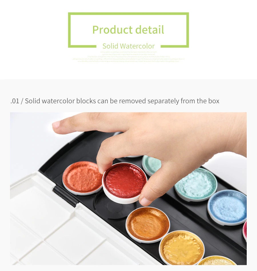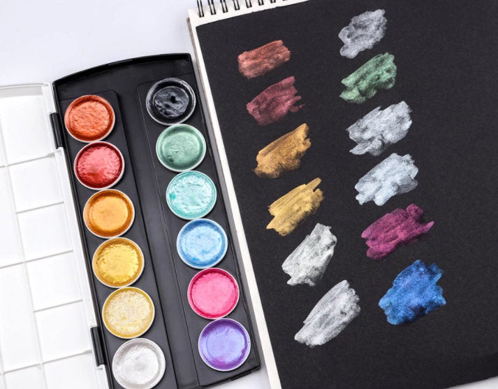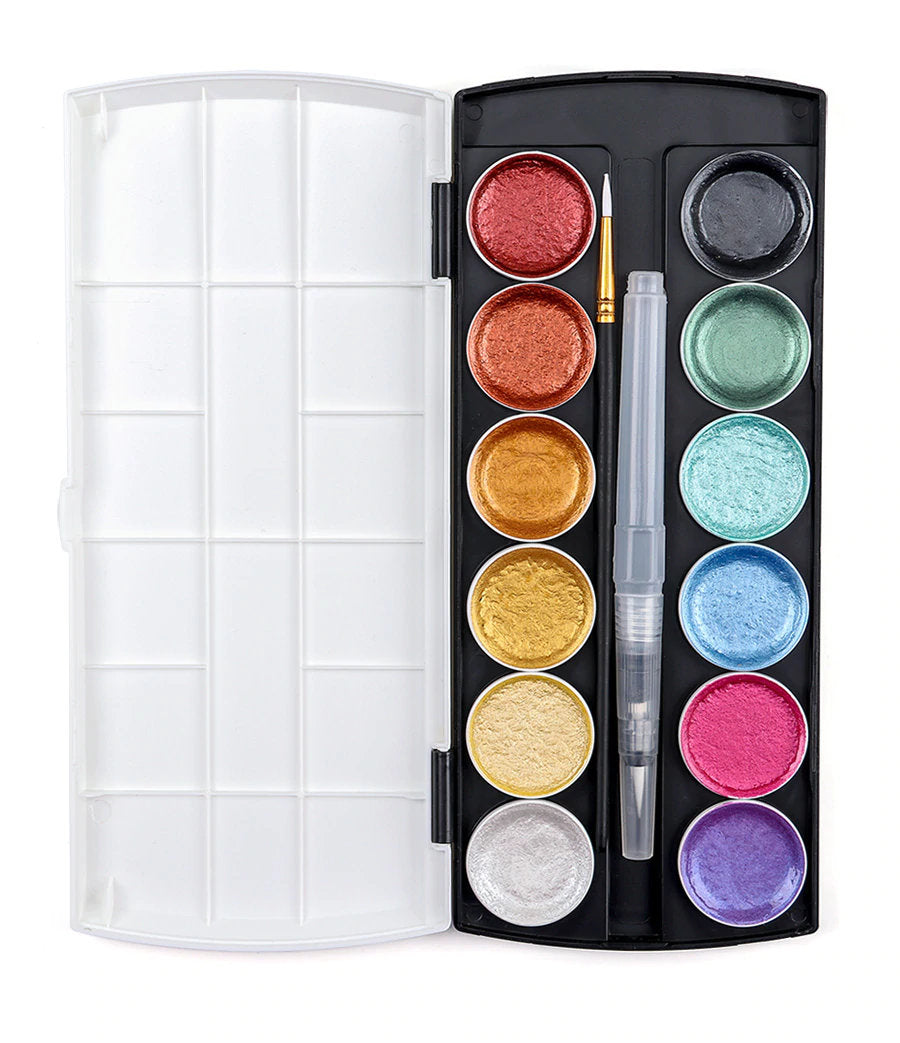 Glitter Watercolor Paint Set With Brush - Painting Supplies Kit - Portable Travel Paint Pallete - Craft Supplies - Painter Gift Tools