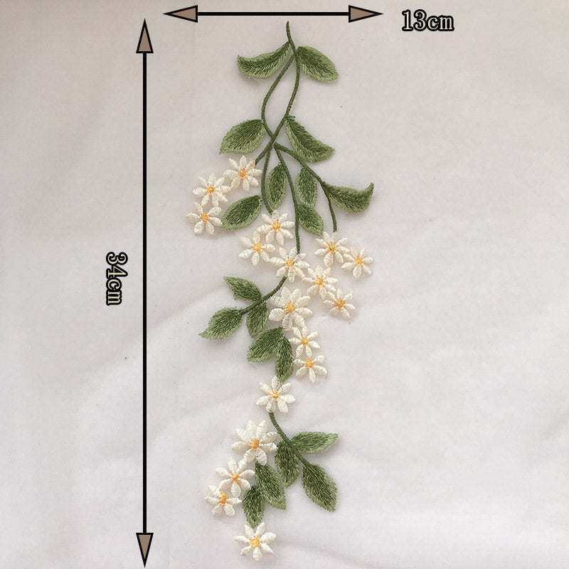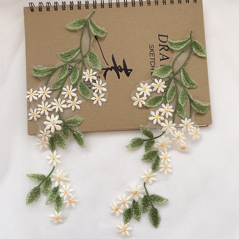 Green Embroidery Lace Applique Flower Leaves Patches Appliques Sewing on Wedding Bridal Bride Evening Dress DIY Supplies Gown 1 Pair