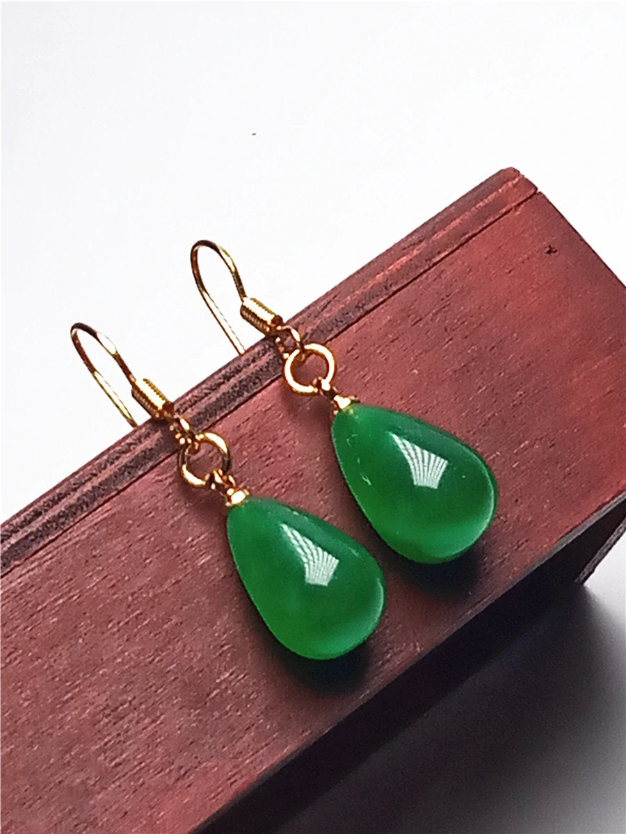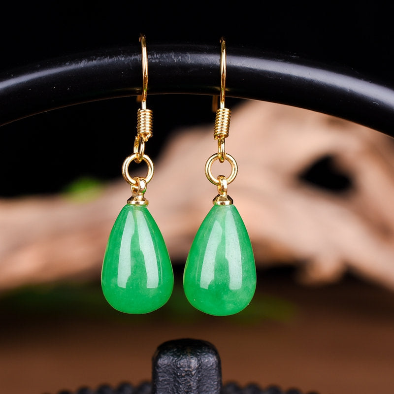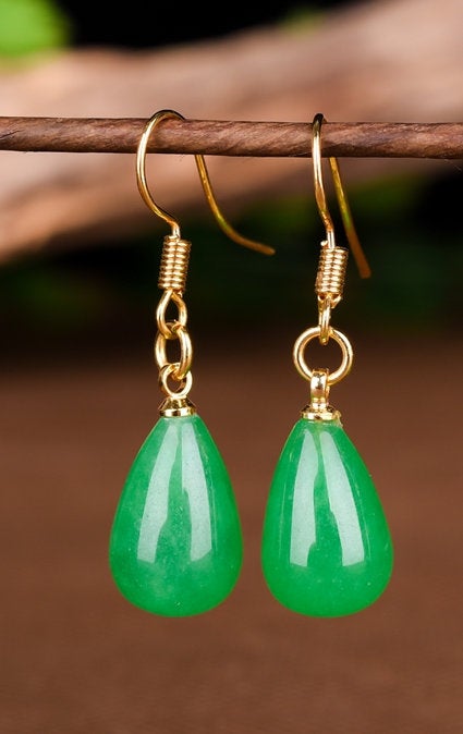 Green Jade Tear Drop Earrings Everyday Minimal Earrings Bridesmaid Earring Simple Classic Earrings Gift for Her Dangle Earring Girlfriend