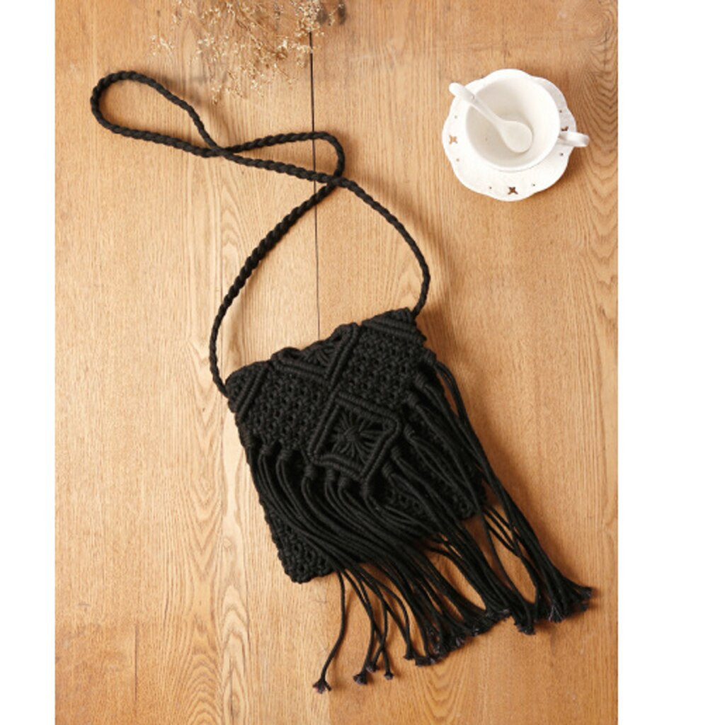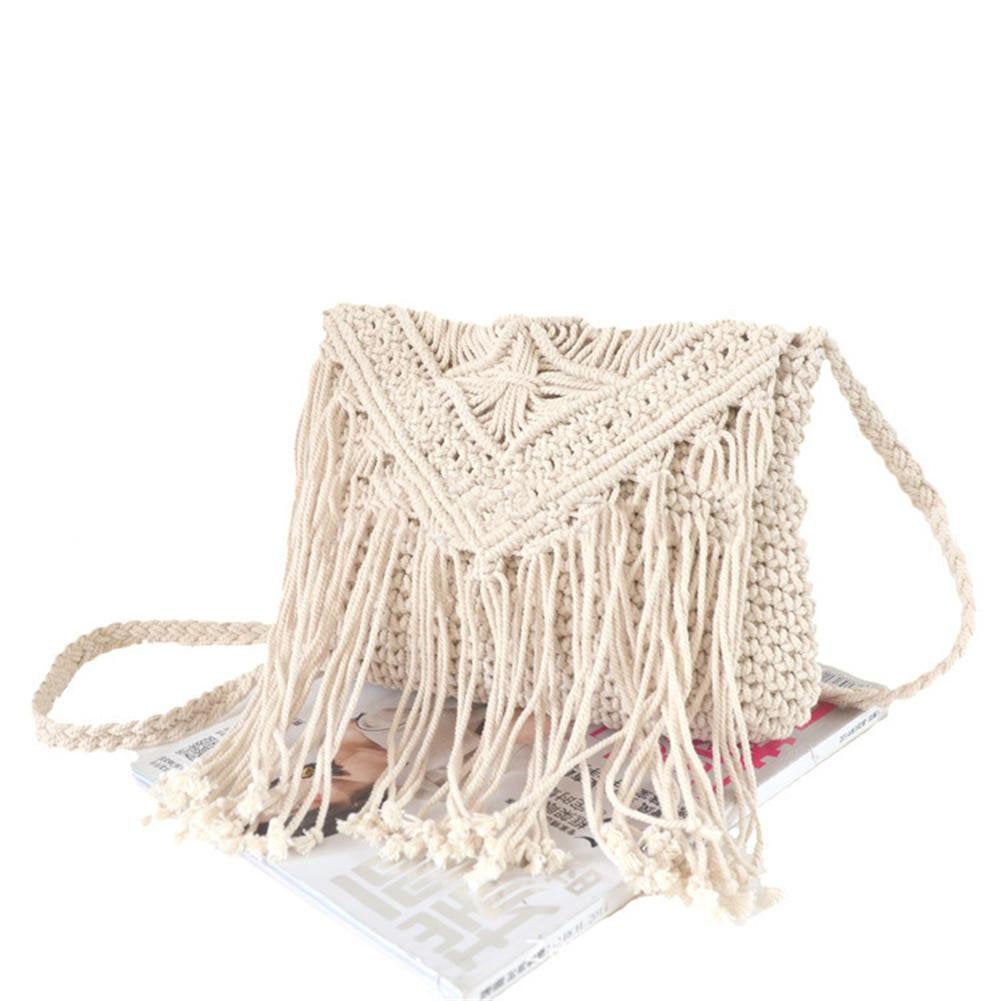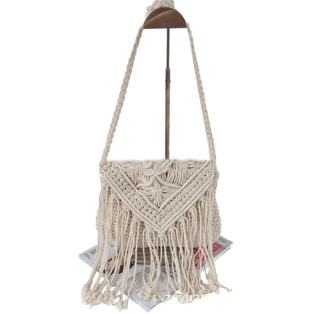 Handmade Macrame Shoulder Bag - Boho Macrame Bag- Cotton Rope Bag - Crossbody Bag - Handmade Knitted Rattan Summer Beach Bag Tassel Women