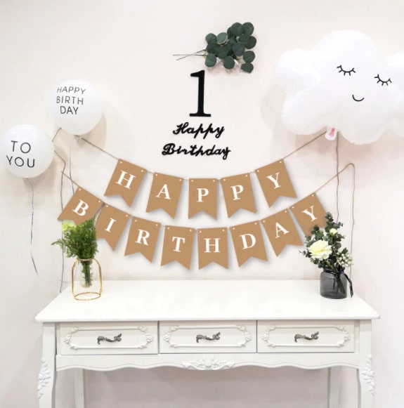 Happy Birthday Kraft Bunting, Party Decorations, Happy Birthday Garland, Birthday Decorations Banner, Birthday Party Supplies Bunting Eco
