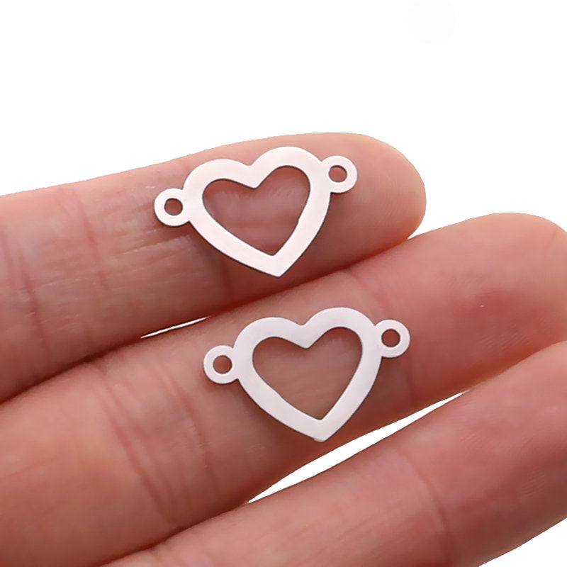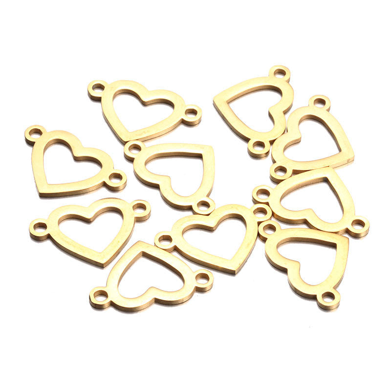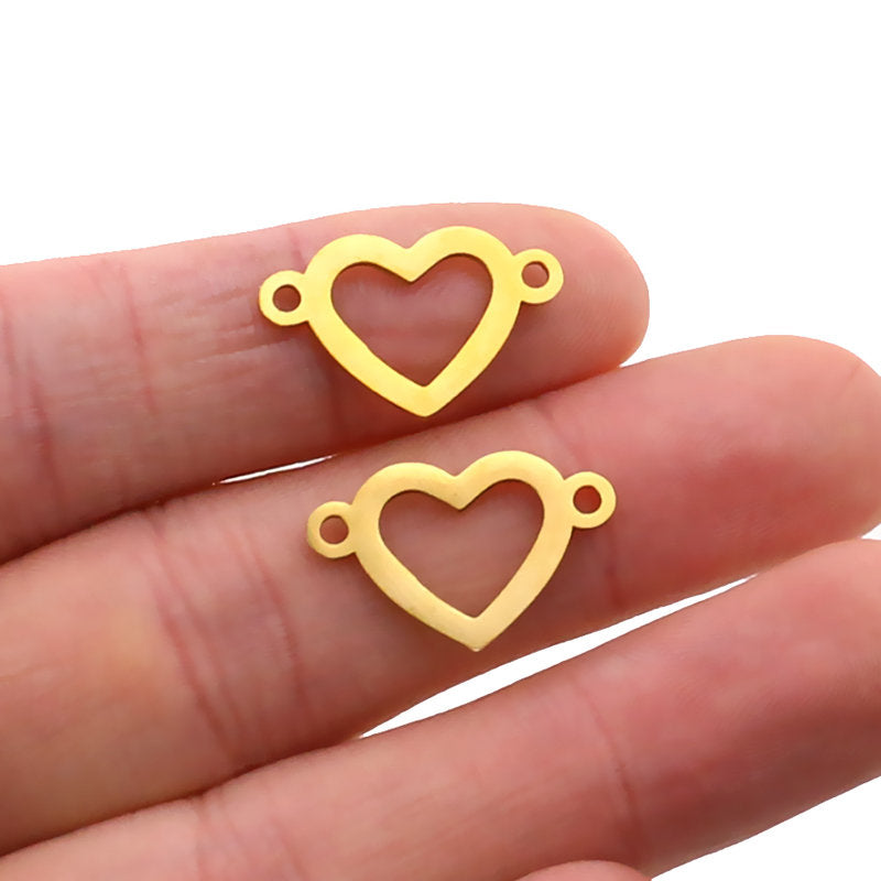 Heart Connector Charm - Jewelry Making Supplies - Mini Heart - Gold Silver