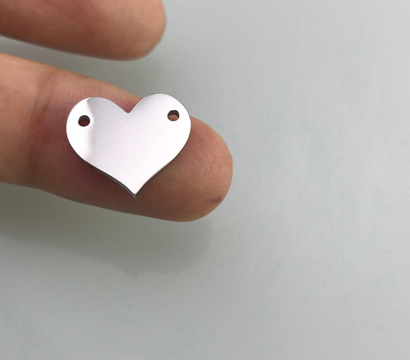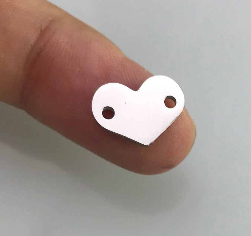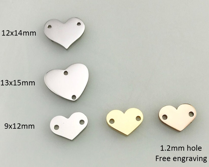 Heart Personalized Charm, Custom Stainless Steel Charm Rose Gold Silver, Logo Laser Engraved Connector Beads For Jewelry Making Bracelets