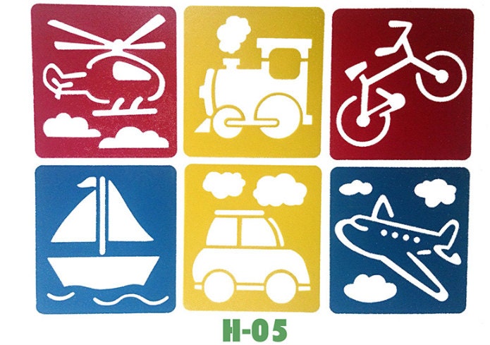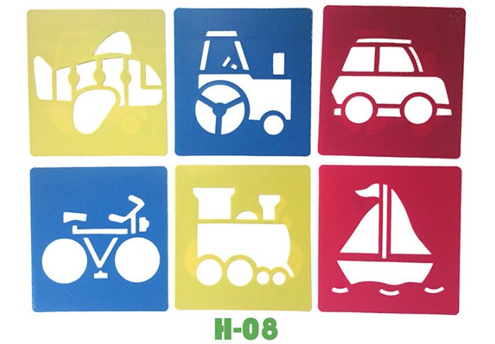 Kids Stencils Cards Craft Wall Drawing Art Airbrush Children Nursery Scrapbooking Cute Playful Cars Truck Animal Christmas Plane Boat Train