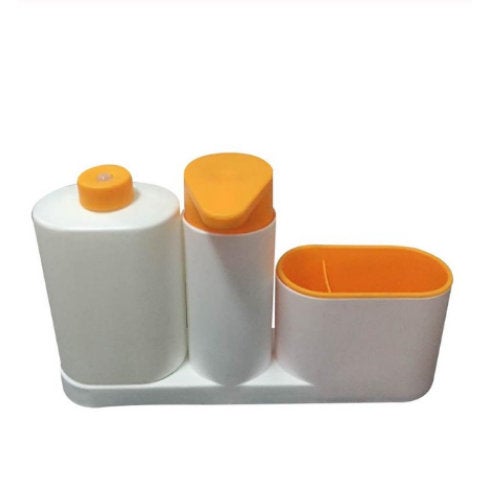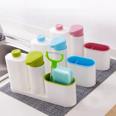 Kitchen Soap Dispenser Set with Sponge Holder and Tray - Lotion Bottle or Liquid Dish Soap - Soap Bottle - Storage Rack Holder Dishwashing