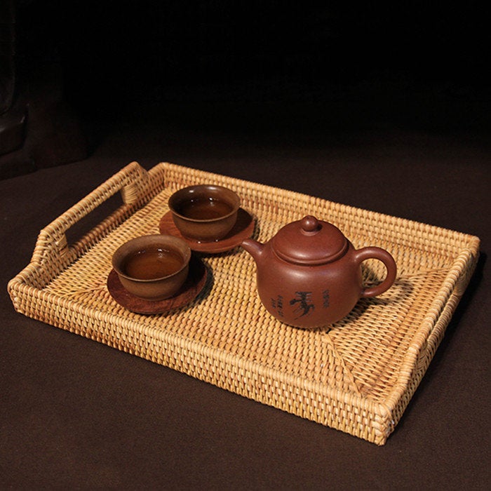 Large Handwoven Rectangular Rattan Breakfast Tray | Rattan Storage Tray | Wedding Gift | Breakfast Table | Bowl Tray | Straw Serving Tray