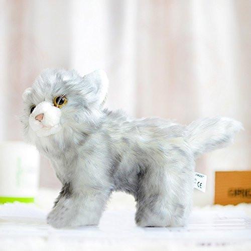 LightningStore Adorable Cute Gray White Cat Doll Big Eyes Realistic Looking Stuffed Animal Plush Toys Plushie Children's Gifts Animals