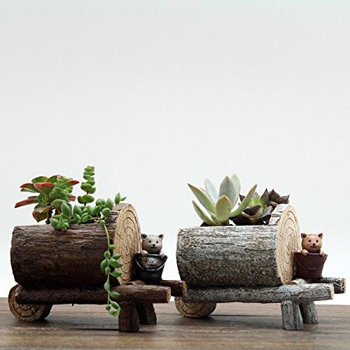 LightningStore Cute Brown Gray Grey Log Succulent Plants Pot Microlandschaft Personalized Office House Balcony Landscape Pot Creative Decorative Flower Pots