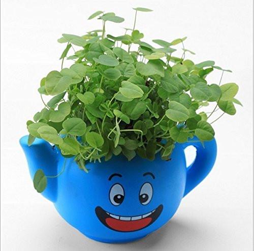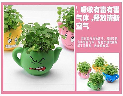 LightningStore Cute Pink Blue Yellow Green Happy Angry Face Flower Plant Tea Pot Succulent Box Planter Flower Pot Eco Bottle Miniature Miero Landscape Vivaria Plants Pot