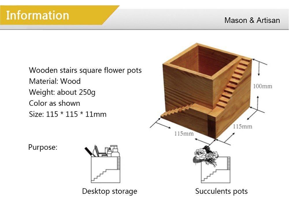 LightningStore Wooden Square Staircase Succulent Plants Pot Microlandschaft Personalized Office House Balcony Landscape Pot Creative Decorative Flower Pots