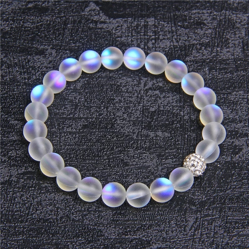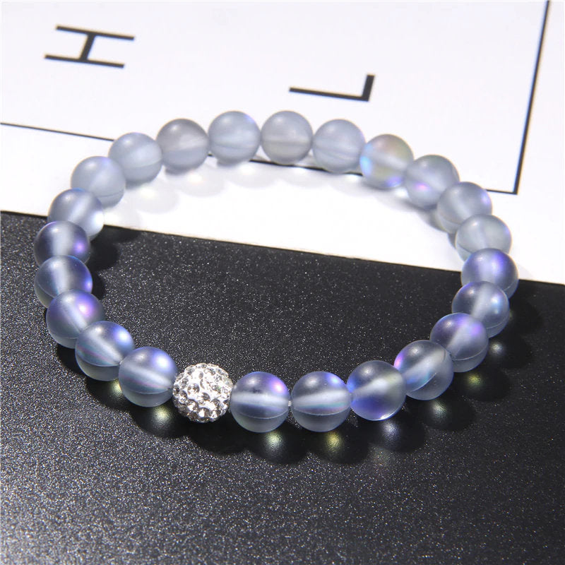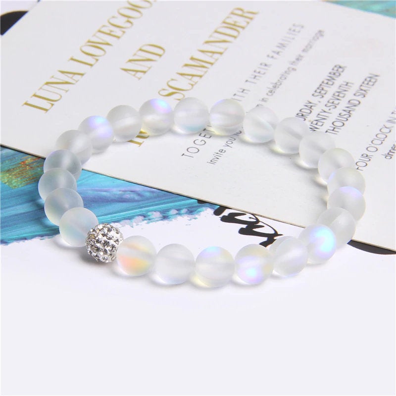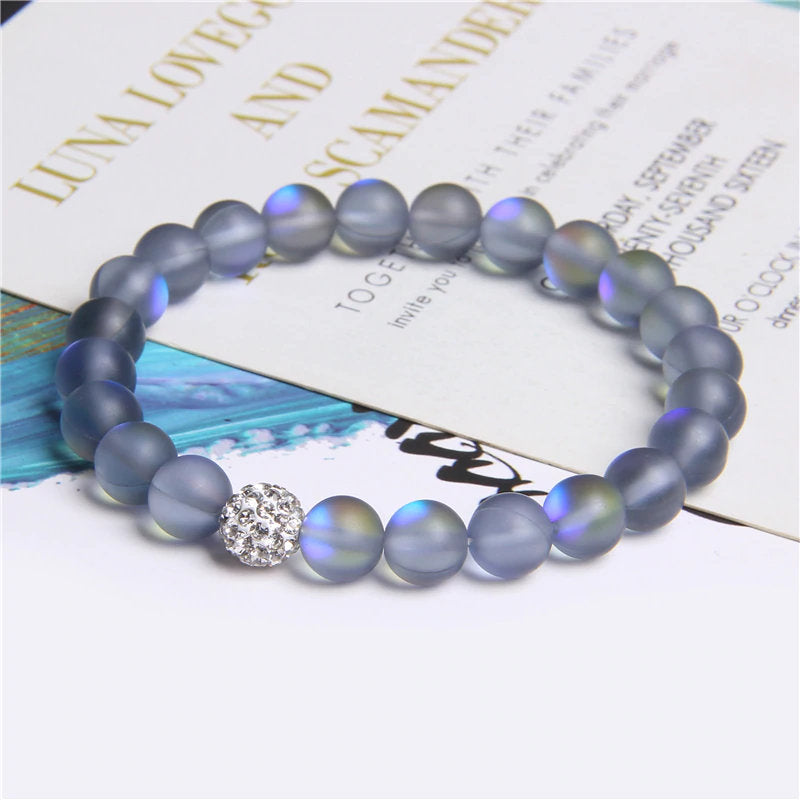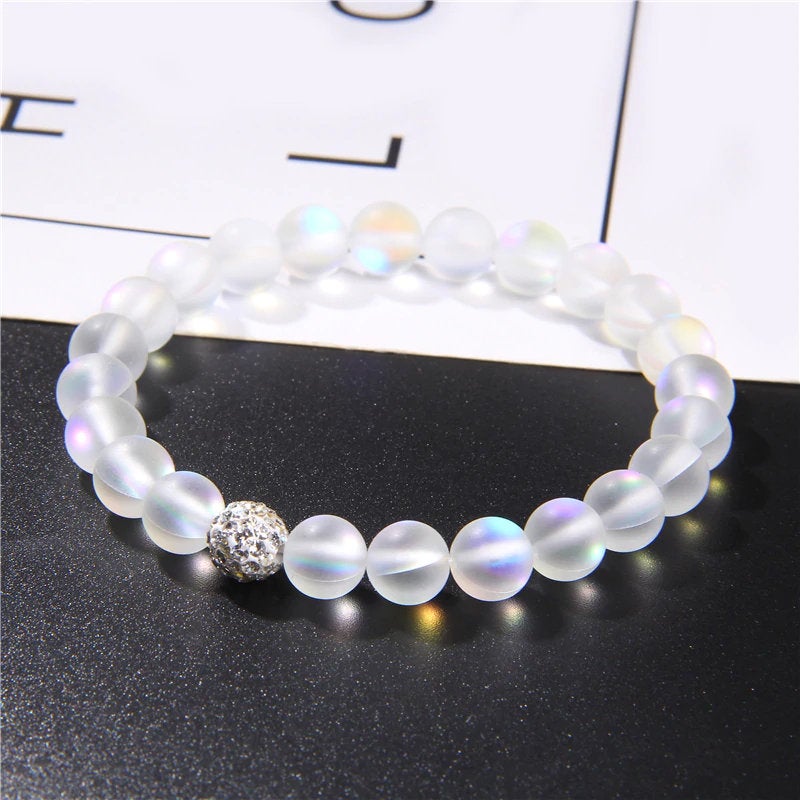 Moonstone Bracelet - Rainbow Moonstone - Gemstone Stretch Bracelet -Beaded Yoga Bracelet - Goddess Stone Feminine Power - Reiki